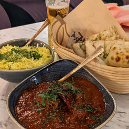 Balham Social arose like a phoenix out of the ashes of the great Covid-19 pandemic restaurant closure. Opening a new restaurant at that time may have seemed bold, but they clearly knew what they were doing - tapping into a new generation of eateries that break from the traditional British curry house. This new style is reflected in a small plates-style menu complete with cocktails and an interior fit for the Instagram generation. Complete with all the glitz of pastel colours, mirrorred walls, ornate glass lampshades, and a floral forest on the ceiling this is the Kardashian of the south west London curry scene. It won't be to everyone's taste, but certainly feels different. Even the name is a little edgy. The pièce de résistance though is a pair of swings that form the chairs around one showpiece table; there is certainly no question the interior designer was treating this place as a playground. Whilst not exactly my cup of tea it certainly sets Balham Social apart, not just geographically, from it's Tooting rivals. Found on the south side of the Balham railway bridge you could easily miss Balham Social, but there's no doubt you'll remember a visit when you do find it.