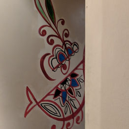 I've had my mind set on Ravi Shankar for a while, wishing to sample the vegetarian wares on offer. First impressions were good with the green, flowery frontage and sign particularly pleasant. Inside the verdant exterior gives way to a light and airy, rustic, cream interior with wooden flooring and glossy, red-painted tables here, there and everywhere. The overall effect is one reminiscent of a primary school classroom, similar to that in nearby Agra, but this time complete with child-like paintings on the wall. The welcome sign upon entry fits this theme perfectly, although the ethereal background has more of a Lucy in the Sky with Diamonds touch to it than finger paint.
