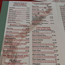 The menu here is nicely divided into sections, like 'Mumbai's Chowpaty' (traditional tasty snacks and chaat) and 'Chef's Selection from South India', based around regions and types of dishes. As such, it's not so easy to discern starters from sides and mains, so I've grouped and rated them as I see best. However, all come on metallic dishes and plates giving an authentic feel.